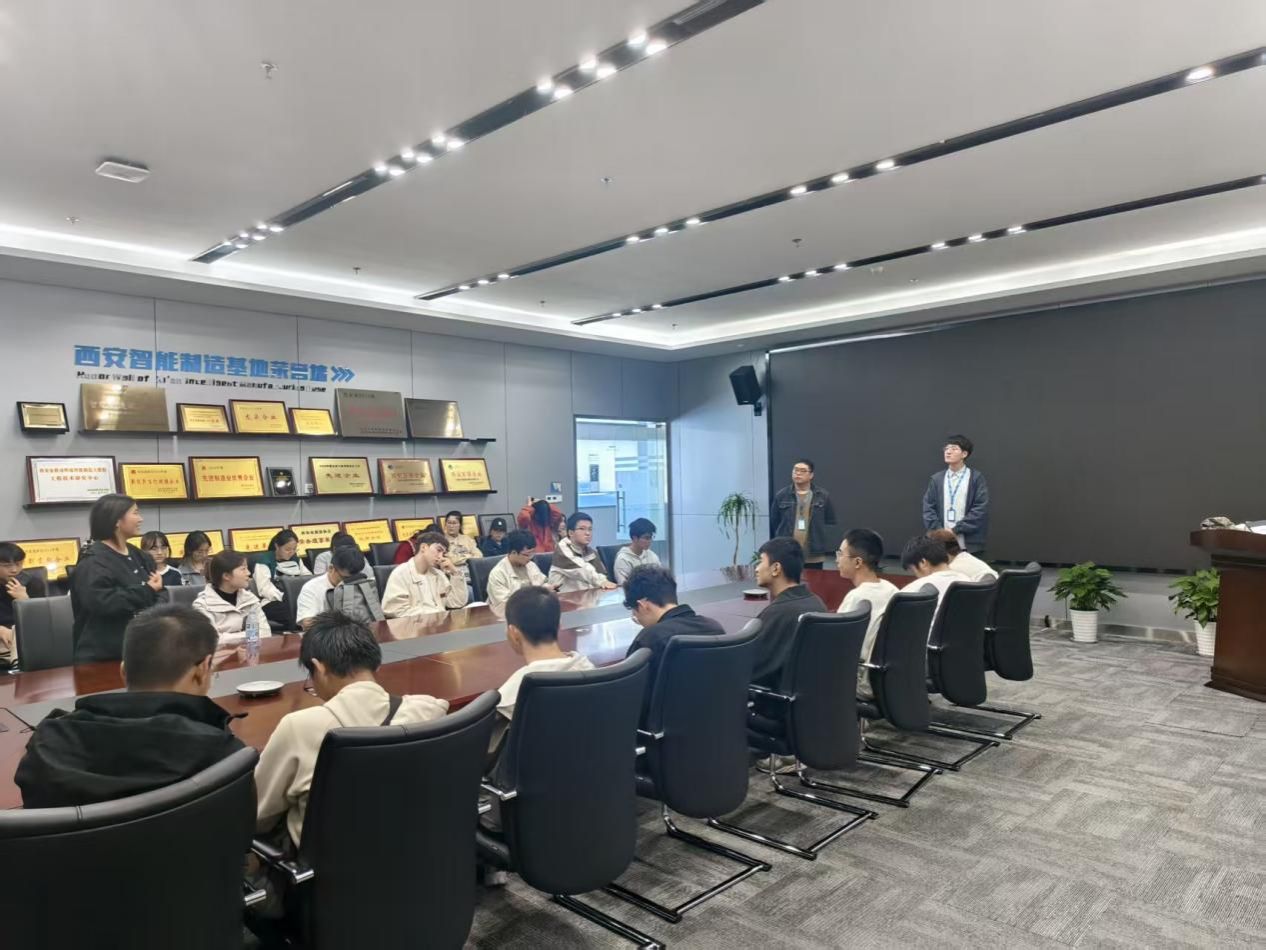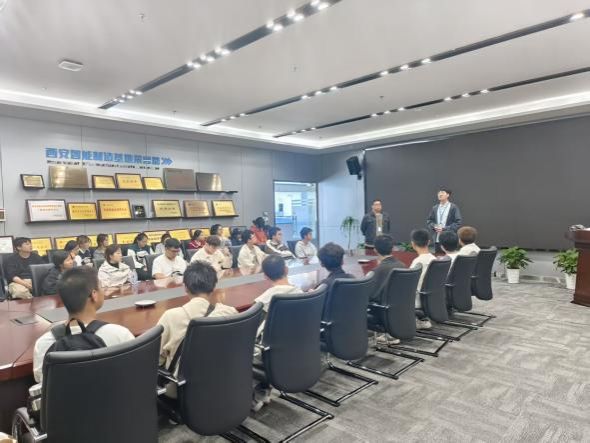 在中兴通讯西安智能制造基地工作人员的带领下,师生们深入参观了高度自动化的智能制造车间。工作人员为同学们系统介绍了企业遍布全国的基地布局、主要业务板块、核心产品系列以及精密产品的加工与组装流程。通过现场观摩和生动讲解,同学们对智能制造的实际应用与企业运营有了更加直观和全面的认识。